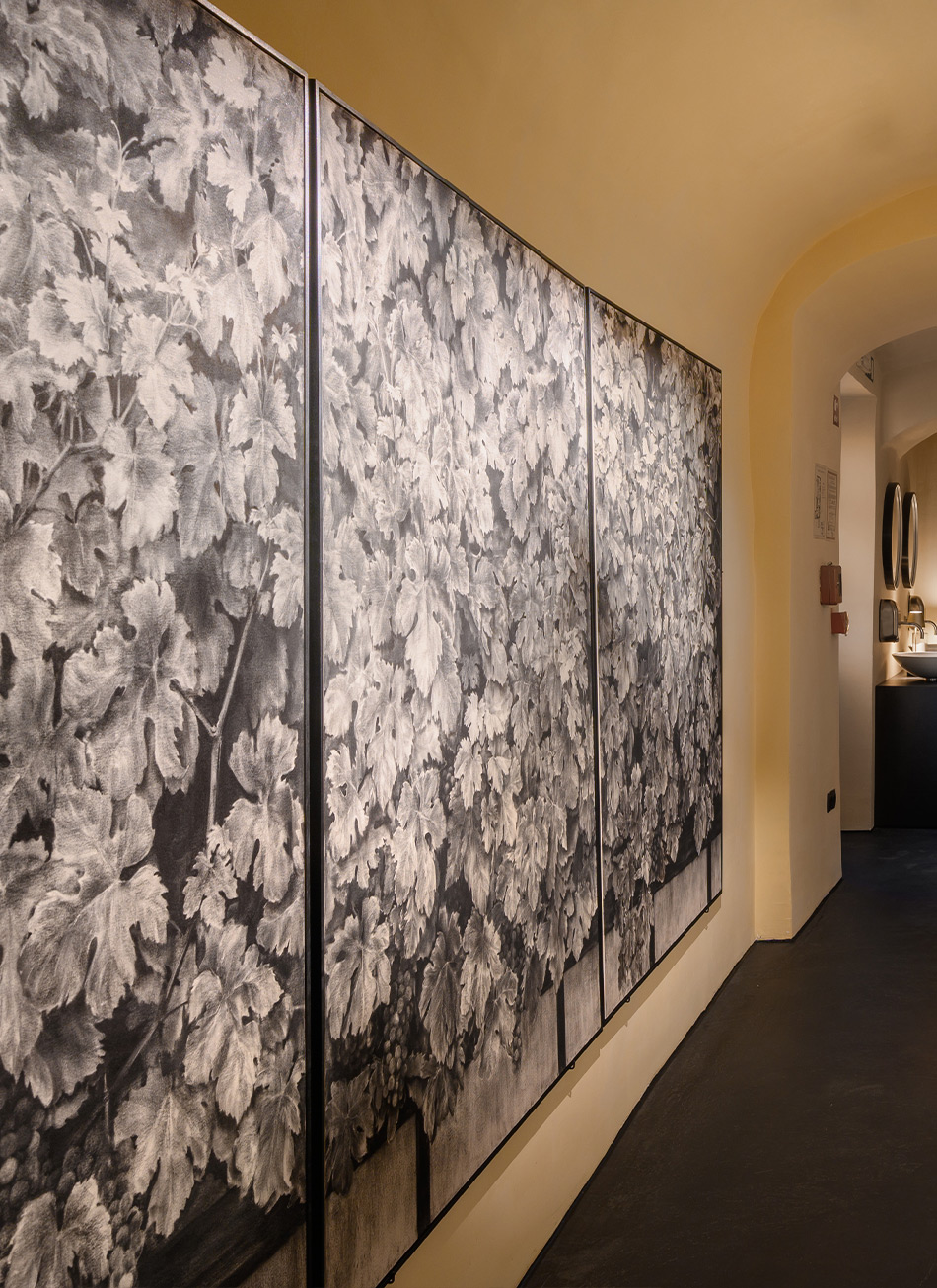 »Prenovljena notranjost združuje teksture, strukture in principe, ki povezujejo preteklost in sedanjost ter odpirajo vrata prihodnosti. Osrednja miza lahkotno lebdi nad mozaikom, simbolom povezovanja, medtem ko svetloba osvetljuje le tisto, kar je nujno, v ravno pravšnji meri, da ustvari intimno in pristno vzdušje.«